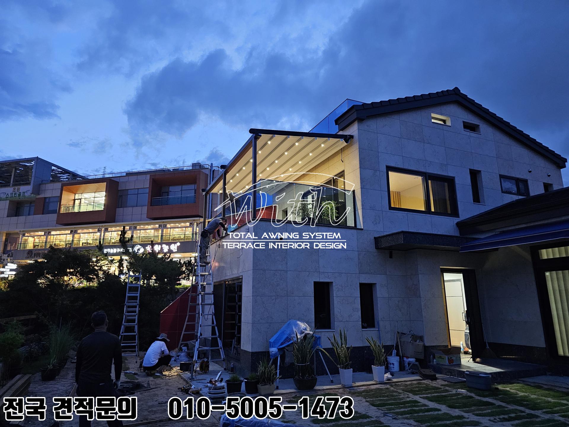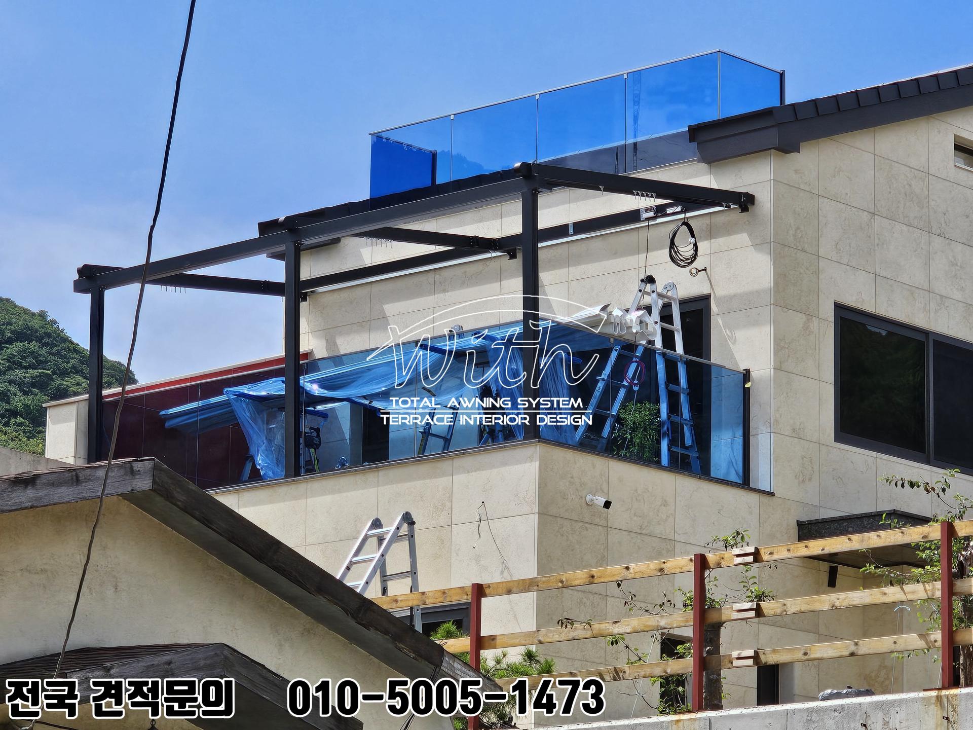 김해 타운하우스 전원주택 2층 테라스 어닝 설치 사례