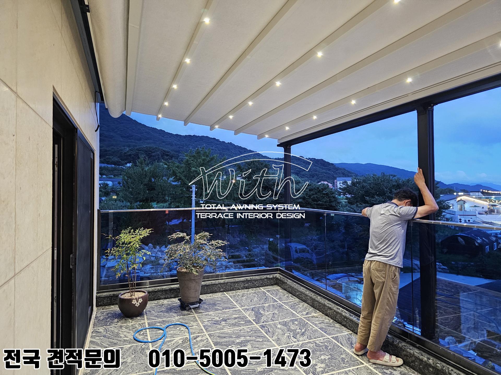 해당 제품은 리모컨으로 접었다 폈다, 개폐가 가능하며, LED옵션 탑재로 조명 컨드롤도 가능합니다.