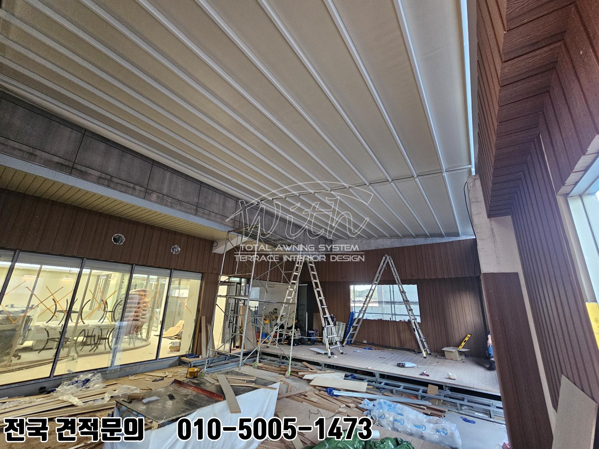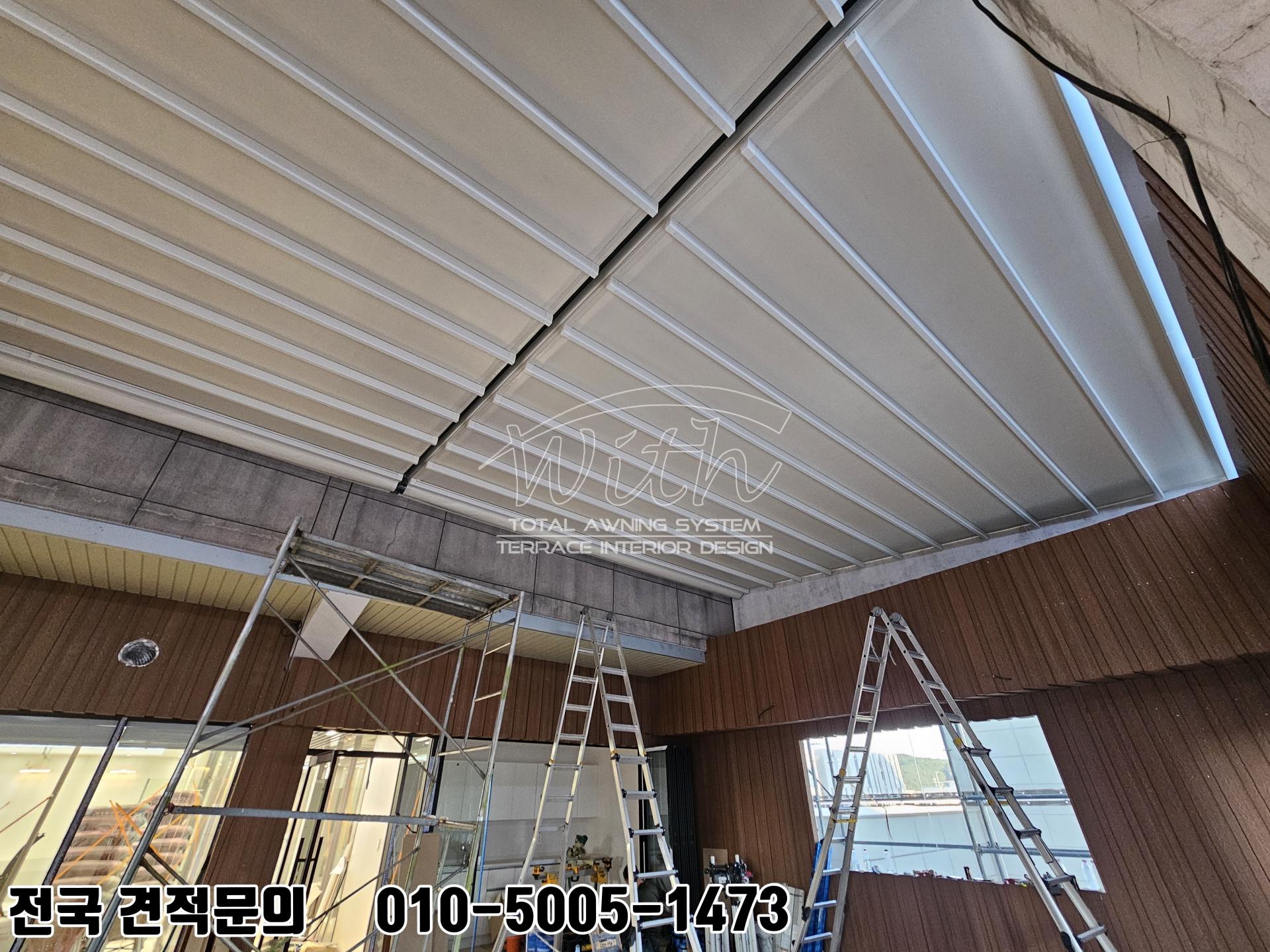 포항 은행 옥상 고객 쉼터 어닝 설치 사례